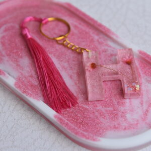 Chaveiro de Resina Letra H com Tessel Rosa