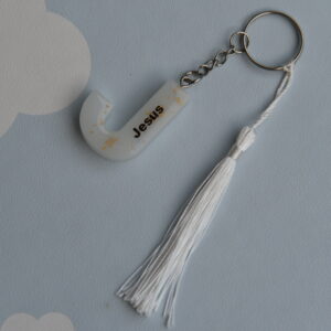 Chaveiro de Resina Letra J com Tessel Branco