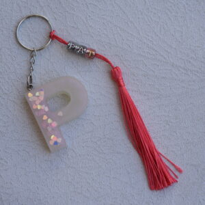 Chaveiro de Resina Letra P com Tessel Rosa